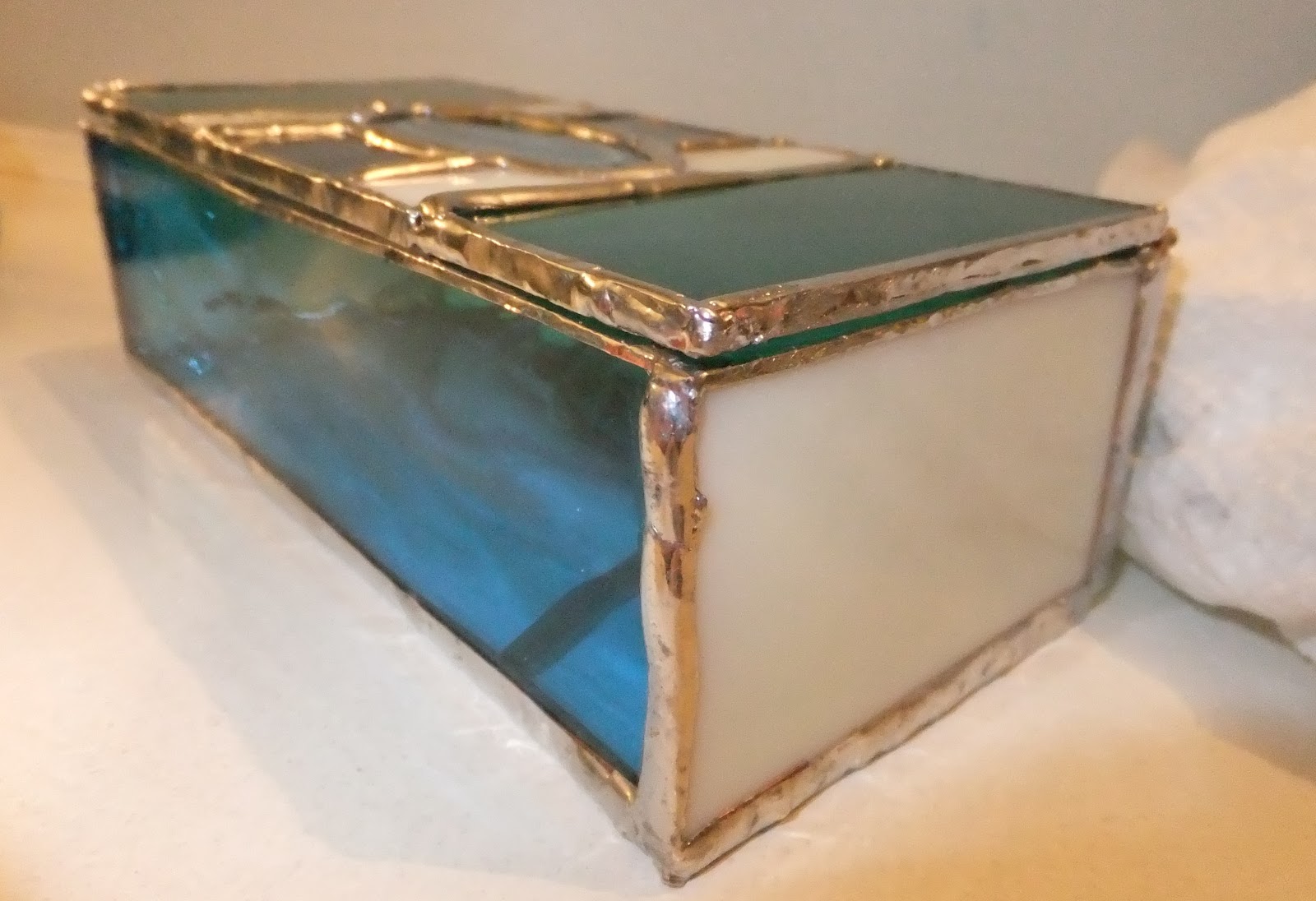 Then, I soldered the outer chamber together. I cut out a triangle of clear glass and soldered it so one end of the chamber to act as a cap.